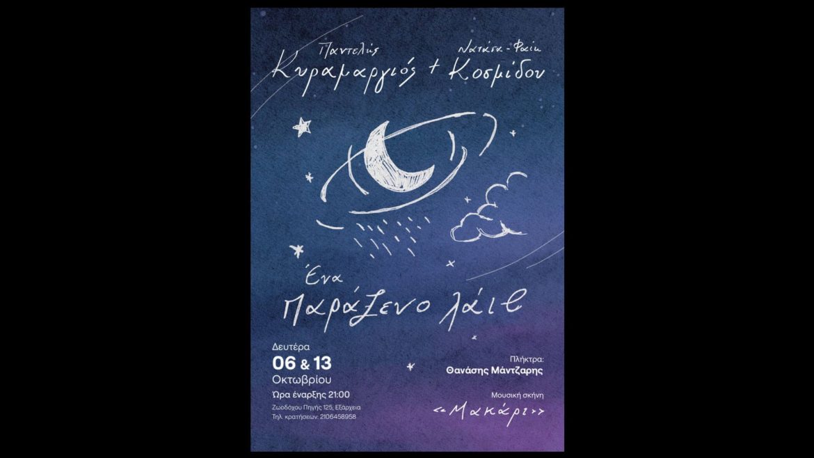 Ο Πάνος Βλάχος LIVE με χωρίς πρόγραμμαΠαρασκευή 10 ΟκτωβρίουΘέατρο Άλσος ΔΕΗΜαζί του:Αλέξανδρος Κούρος : drums-keyboardsΛάμπης Κουντουρόγιαννης : κιθάραΑντωνία Τσολάκη : μπάσοΚωστας Φορτσας : πνευστάΒασίλης Γκορίτσας : keyboards-ακορντεόνΕπιμέλεια-σχεδιασμός ήχου : Νίκος Κωνσταντάκης & Γιώργος ΤσατσούληςΕπιμέλεια Παραγωγής : Imaginart LiveΓραφιστικά: Φοίβος ΜποζάςΦωτογραφία αφίσας: Γιώργος ΣπανόςΠληροφορίες:ΔΕΗ ΘΕΑΤΡΟ ΑΛΣΟΣ: Ευελπίδων 4, Κυψέλη – Πεδίον του ΆρεωςΤηλ. Κρατήσεων: 210-8227471 & 210-8831487Ώρα έναρξης: 20:00Προπώληση: https://www.more.com/gr-el/tickets/music/panos-blaxos-7 και στα ταμεία του Θεάτρου.ΕΠΙΚΟΙΝΩΝΙΑ & ΠΡΟΒΟΛΗ ΤΗΣ ΠΑΡΑΣΤΑΣΗΣ ΣΤΑ MEDIA: […]