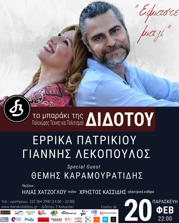 “ΕΙΜΑΣΤΕ ΜΑΖΙ” ΕΡΡΙΚΑ ΠΑΤΡΙΚΙΟΥ & ΓΙΑΝΝΗΣ ΛΕΚΟΠΟΥΛΟΣ ΣΤΟ ΜΠΑΡΑΚΙ ΤΗΣ ΔΙΔΟΤΟΥ ΤΗΝ ΠΑΡΑΣΚΕΥΗ 20 ΦΕΒΡΟΥΑΡΙΟΥ