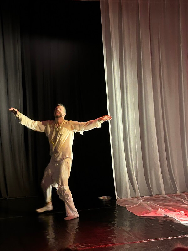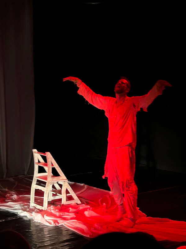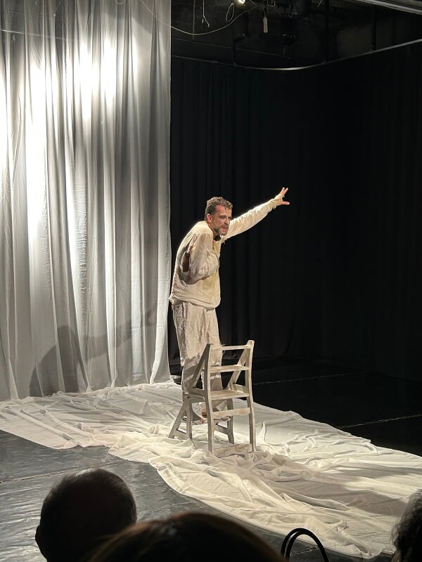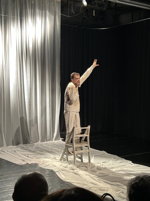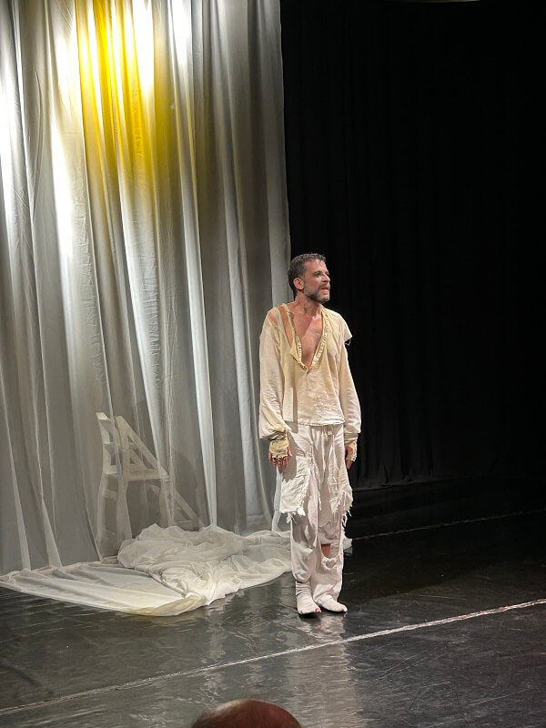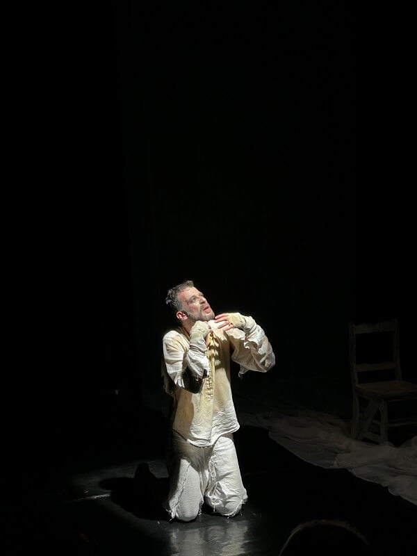 Ο Γιώργης Κοντοπόδης παραδίδει μια ερμηνεία που διαπερνά το μάρμαρο και τη σιωπή. Δεν «παίζει» τον Χαλεπά· γίνεται ο Χαλεπάς. Η κίνηση του σώματός του, το τρέμουλο, οι διστακτικές αναπνοές, οι εκρήξεις λόγου και παραληρήματος, δημιουργούν μια απόλυτα βιωματική εμπειρία. Με τη φωνή του να σπάει και να γλυκαίνει μέσα σε δευτερόλεπτα, μας μεταφέρει στο σκοτάδι ενός ανθρώπου που πάλεψε να κρατήσει την ψυχή του ζωντανή, ενώ όλοι γύρω του την καταδίκαζαν ως άρρωστη. Είναι μια ερμηνεία οριακή, σχεδόν εξομολογητική — εκεί όπου ο ηθοποιός ακουμπά τα όρια του ίδιου του εαυτού του.