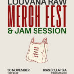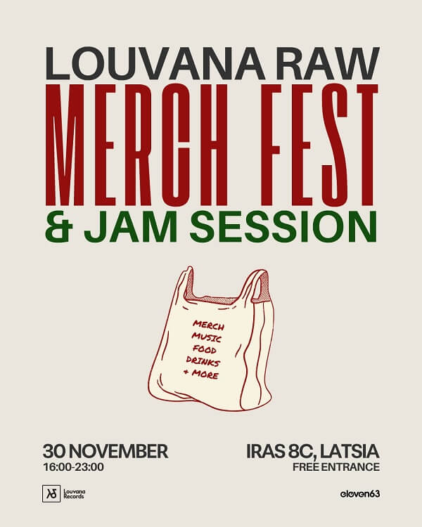 Στις 30 Νοεμβρίου, από τις 4 το απόγευμα μέχρι τις 11 το βράδυ, η Louvana Records διοργανώνει το πρώτο Louvana Raw – Merch Fest & Jam Session στον χώρο στάθμευσής της στα Λατσιά. Ένα φεστιβάλ αφιερωμένο στο merch, όπου τοπικές μπάντες, labels και μουσικές πρωτοβουλίες θα παρουσιάσουν και θα διαθέσουν τα προϊόντα τους. Οι επισκέπτες θα έχουν την ευκαιρία να απολαύσουν και να συμμετέχουν σε ένα ανοιχτό jam session, συνοδευόμενο από φαγητό και ποτό. Η είσοδος είναι ελεύθερη.