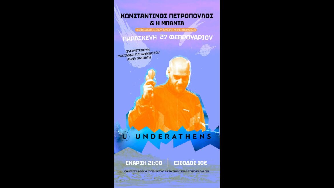 “ΧΛΩΜΗ ΜΠΛΕ ΚΟΥΚΙΔΑ” Ο ΚΩΝΣΤΑΝΤΙΝΟΣ ΠΕΤΡΟΠΟΥΛΟΣ ΠΑΡΟΥΣΙΑΖΕΙ ΤΟ ΝΕΟ ΤΟΥ ALBUM ΣΤΟ UNDERATHENS ΤΗΝ ΠΑΡΑΣΚΕΥΗ 27 ΦΕΒΡΟΥΑΡΙΟΥ