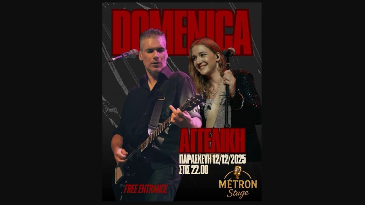 Ο Δημήτρης Κανελλόπουλος των Domenica συναντά επί σκηνής την Αγγελική Βλαχάκη, την ανερχόμενη τραγουδοποιό που γνωρίσαμε από το τραγούδι «Με ποιο δικαίωμα».Στο ολοκαίνουργιο Metron Stage, σε έναν χώρο με προσεγμένο ήχο και ατμόσφαιρα, οι δύο καλλιτέχνες παρουσιάζουν μια συνεργασία που κινείται ανάμεσα στη ροκ ευαισθησία των Domenica και τη σύγχρονη προσωπική γραφή της Αγγελικής. Σας περιμένουμε για να απολαύσουμε όλοι μαζί ένα πρόγραμμα με αγαπημένα κομμάτια, νέο υλικό και την ενέργεια […]