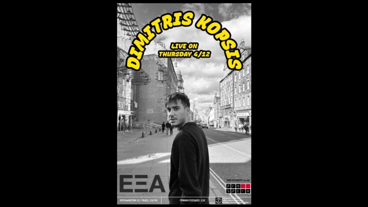 O Δημήτρης Κόψης live στο EΞΑΠέμπτη 4 ΔεκεμβρίουΟ Δημήτρης Κόψης, ένας νέος δημιουργός και ερμηνευτής με φρεσκάδα, ταλέντο και απεριόριστη αγάπη στη μουσική, ανεβαίνει στη σκηνή του ΕΞΑ στην καρδιά της Αθήνας, λίγο πριν το τέλος της χρονιάς, για μια μοναδική βραδιά γεμάτη ενέργεια και pop διάθεση!Με αφορμή την κυκλοφορία του πρώτου προσωπικού δίσκου του με τίτλο «Στις μικρές διαδρομές», ο Δημήτρης παρουσιάζει ένα πρόγραμμα που ισορροπεί ανάμεσα στη διεθνή και […]